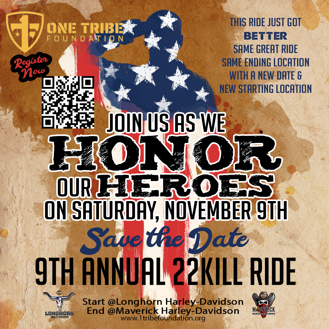 One Tribe Foundation is looking for volunteers to help Saturday Nov 9th, 2024, for the One Tribe Foundation’s 9th Annual 22KILL Ride 2024.